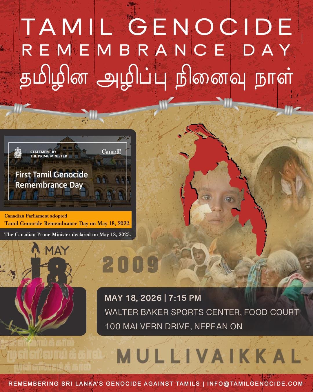 Tamil Genocide Remembrance Day – தமிழின அழிப்பு நினைவு நாள் – May 18, 2026 Ottawa